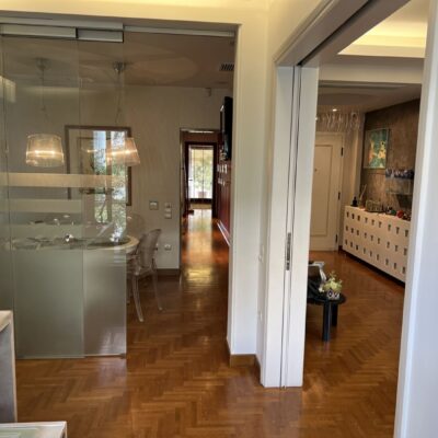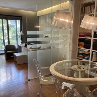 Πολυτελές, φωτεινό, διαμπερές, προσόψεως μεγάλο διαμέρισμα 120τμ, 2ου ορόφου στο καλύτερο σημείο του Κολωνακίου. Αποτελείται από ένα τεράστιο γραφείο νεοκλασικής αισθητικής, επενδεδυμένο με ξύλο, και τέσσερις ακόμη θέσεις εργασίας σε τρεις διαχωρισμένους χώρους, μεταμοντέρνας αισθητικής. Η διαμόρφωση του μπορεί εύκολα να μεταμορφώσει το γραφείο σε ένα διαμέρισμα 2-3 υπνοδωματίων. Διαθέτει ξύλινα δρύινα πατώματα, κουφώματα αλουμινίου επενδεδυμένα με μασίφ ξύλο και σίτες. Οι διακοσμητικές παρεμβάσεις με υψηλής ποιότητας υλικών κατασκευής συμβάλλουν στην υψηλή αισθητική του χώρου, καθώς διαθέτει ψευδοροφές με κρυφό φωτισμό και σποτ, ψευδοροφή με διακοσμητικές οπτικές ίνες, εσωτερικό κλιματισμό οροφής, με τρεις μονάδες ανά ζώνη (ψύξη, θέρμανση) και εξαερισμό. Διαθέτει συναγερμό και τηλεφωνικό κέντρο – δίκτυο σε όλους τους χώρους. Εκτός του εσωτερικού κλιματισμού, διαθέτει κεντρική θέρμανση φυσικού αερίου. Επίσης έχει ηλεκτρικές τέντες και παντζούρια καθώς και ηλεκτρικές περσίδες. Διαθέτει μπάνιο με μοντέρνο σχεδιασμό και εκκεντρικό ευρύχωρο ντουζ, wc, copy room, κουζίνα με εντοιχισμένες συσκευές Miele. Επίσης διαθέτει πόρτα ασφαλείας, και ξεχωριστή αποθήκη 4τμ εκτός του διαμερίσματος. Ανακατασκευασμένο το 2018, κατασκευή του κτηρίου το ’65, σε οικόπεδο 587 τ.μ.